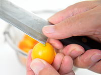 金柑の表面について付いている汚れを、洗い流します。 |