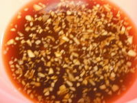 タレを作ります。ポン酢、にんにく、生姜を混ぜ合わせます。 |