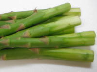 アスパラの硬い部分をピーラーなどで皮を剥き、好みの形に切ります。 |