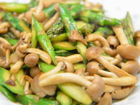 春が旬のアスパラとぶなしめじを、バターで炒めました。
