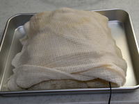 バットの上に敷き、米の塊をほぐしながら移し替えます。米が乾燥しないようにまとめて、再度布で包み込みます。前回は、この上に綺麗な乾いたタオルや布を被せましたが、今回は量が少ないので上で重なる部分が多くなるので、タオルは被せませんでした。 |