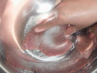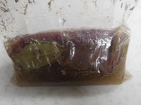 上は分かり安いようにボールに入れて写真を撮りましたが、実際に保管しておくときは保存袋に入れ、冷蔵庫に保管します。時間は24時間としました。 |