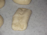 丸めた生地が乾燥しないように、固く絞った濡れ布巾やサランラップ、蓋などを被せ、15分くらい生地を休ませます。(ベンチタイム)ベンチタイムは、切り分け丸め直して硬くなった生地の伸縮性を回復させるたの時間です。ベンチタイムの時に、パンマットやクッキングシートなどの上に置いて休ませると、生地がくっつきにくくなります。 |