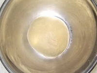 油脂を塗っておいたボールに入れ、乾燥しないようにサランラップや蓋などをして、室温(25℃くらい)で50分くらい、一次発酵させます。
