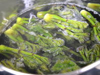 天ぷらと食べるのが一番美味しいですが、茹でて酢味噌と和えると、日本酒が欲しくなる一品になります。 材料 タラの芽 10本くらい 塩 少々 味噌 35g 酢 10g 砂糖 10g 【関連リンク】 ・タラの芽のレシピ ・山菜のレシピ タラの芽の酢味噌和えの作り方 タラの芽の固い部分を切り取り、根元のハカマを取り除きます。 塩を加えた熱湯にタラの芽を入れ、鮮やかな緑色になるように茹でます。 茹で終わったら冷水に浸けて冷まします。 味噌、酢、砂糖を混ぜ合わせ酢味噌を作ります。出来た酢味噌と水気を切ったタラの芽と混ぜ合わせます。 完成 タラの芽の酢味噌和えの完成です。