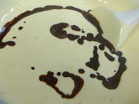 生地に溶かしておいたココアを2~3回に分けて、泡を潰さないように混ぜ合わせます。 |