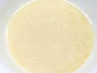 バターと砂糖がしっかり混ざり合ったら、溶き卵を少しずつ加え、その都度しっかり混ぜ合わせます。卵を一気に入れてしまうと卵とバターが分離してしまうので注意してください。 |